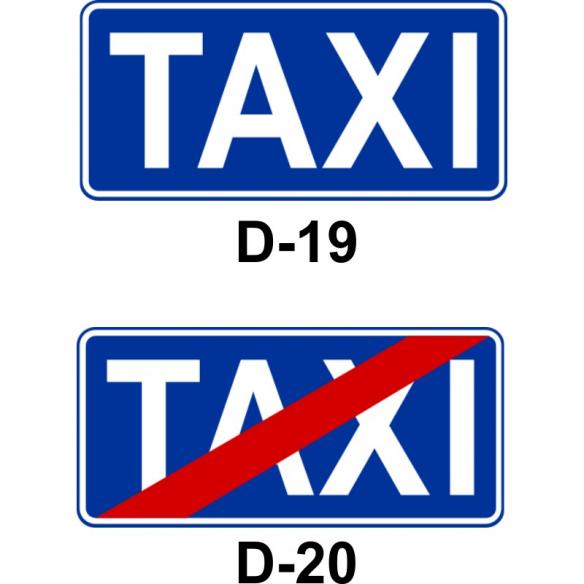 D 20 oznacza miejsce, w którym kończy się postój taksówek; jeżeli na postoju taksówek nie umieszczono znaku D-20, to kończy się on w odległości nie większej niż 20 m przed znakiem D-19.